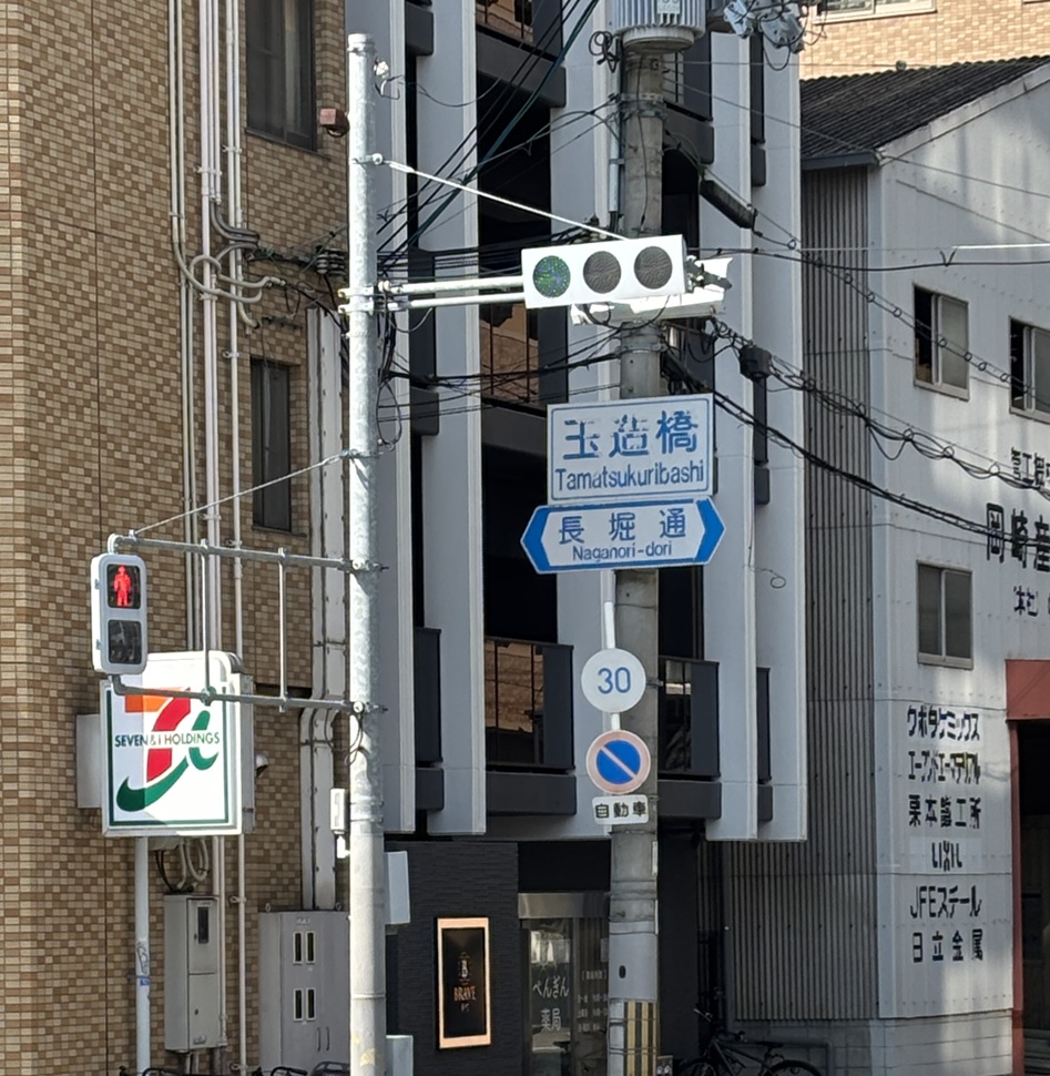 江戸時代初期に伏見の町人たちによって開削された長堀川は、昭和46年(1971)に埋め立てられ、道路の中央分離帯に