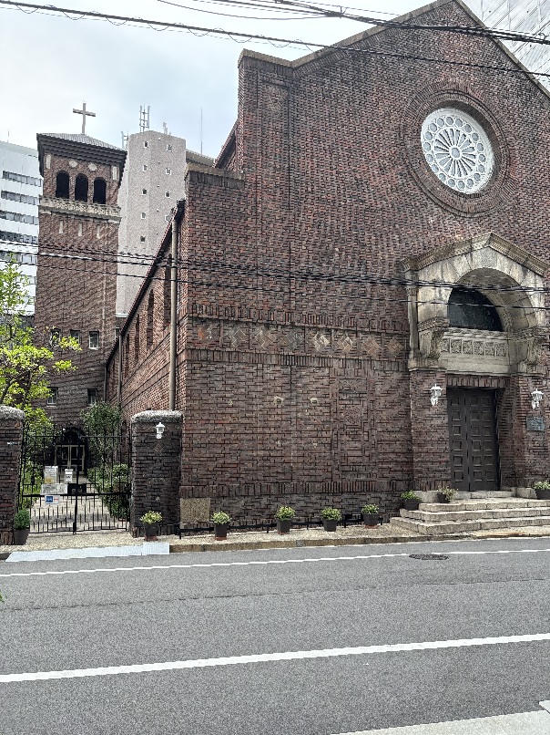 明治19年、長州藩蔵屋敷跡に伝導・教育の拠点として、赤いパン瓦屋根、煉瓦造りで建設された。