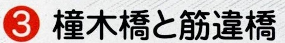 後に江戸堀川が狭められた関係で現在みられるような斜めの橋になり筋違橋(すじちがいばし)ができ、江戸堀川埋め立て後、 撞木橋はなくなった。