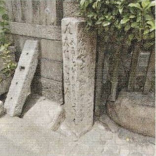 羽間邸前に江戸時代の道標があります。正面に「左・五百らかん(妙徳寺)了とくいん(了徳院)・大仁(大淀の大仁村)むめた(梅田)」と読め、右面は「右・藤名所(野田村の藤)ふ奈つハシ(船津橋)さこ者(雑喉場)左・奈かやま(中山寺)あま可さき(尼崎)」です。